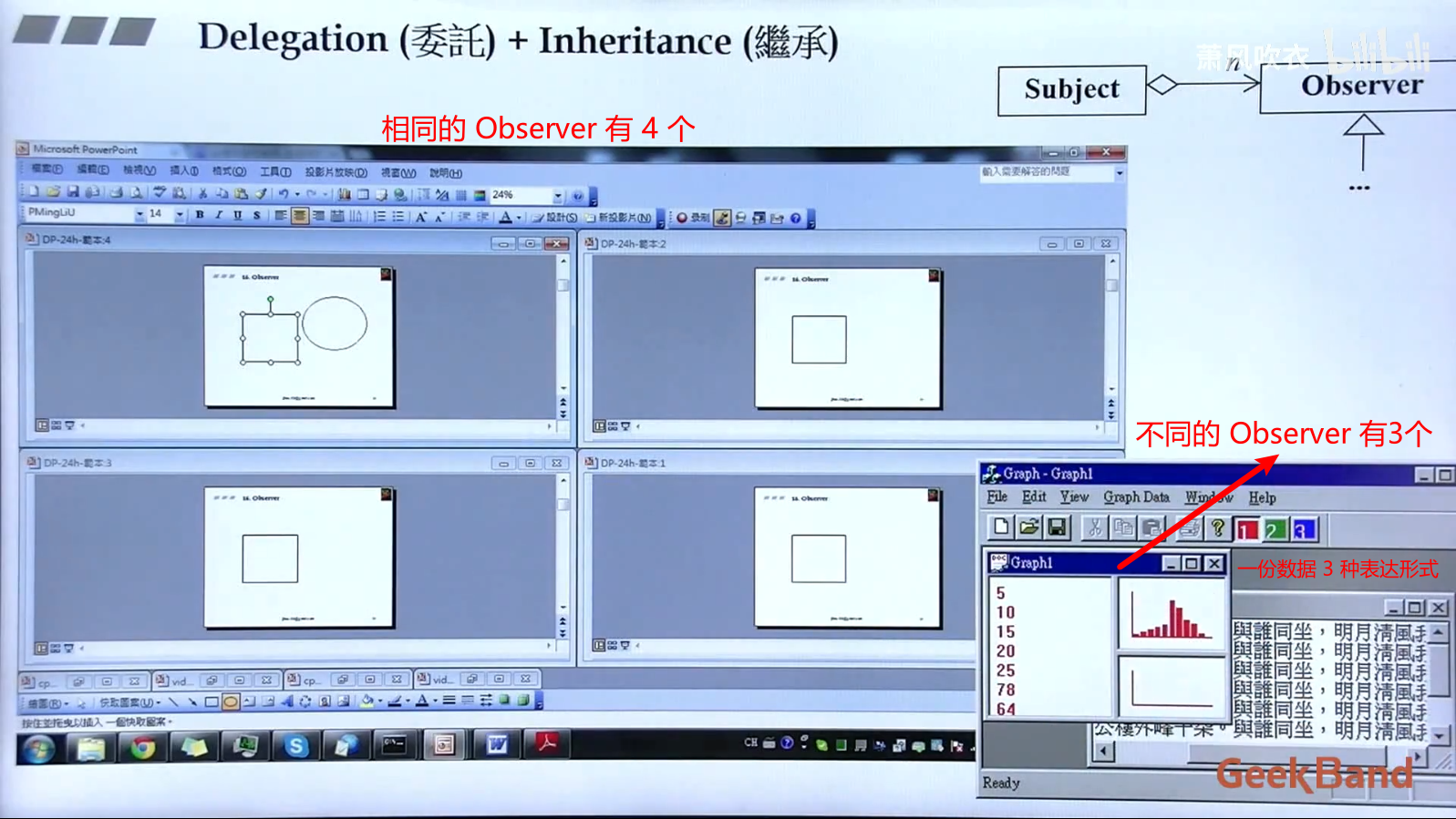 如下图,左边是有 4 个相同的 observer 在看同一份数据,右边是有 3 个不同的 observer 在看同一份数据。数据更新的时候,窗口的内容应当同步更新。